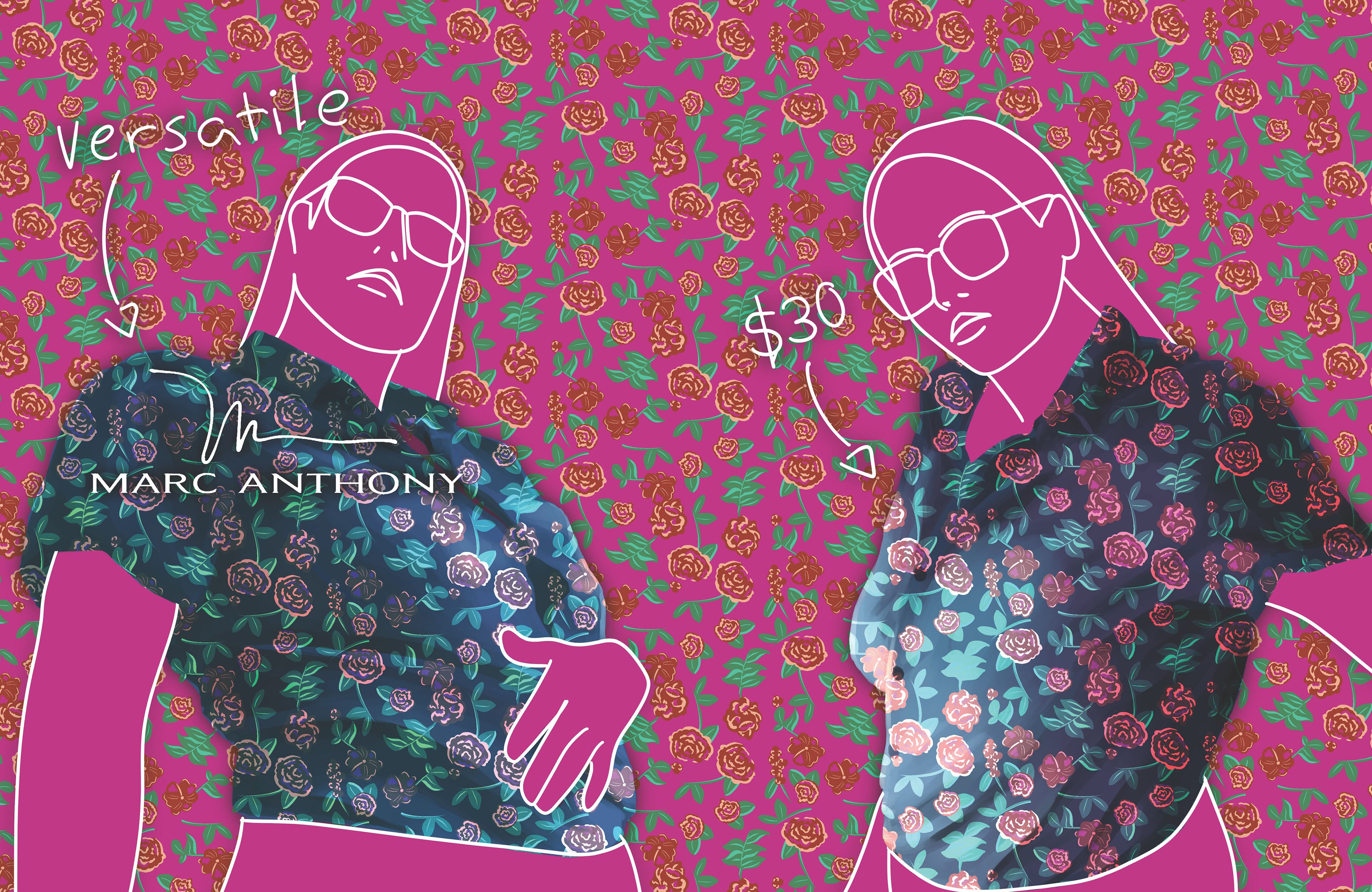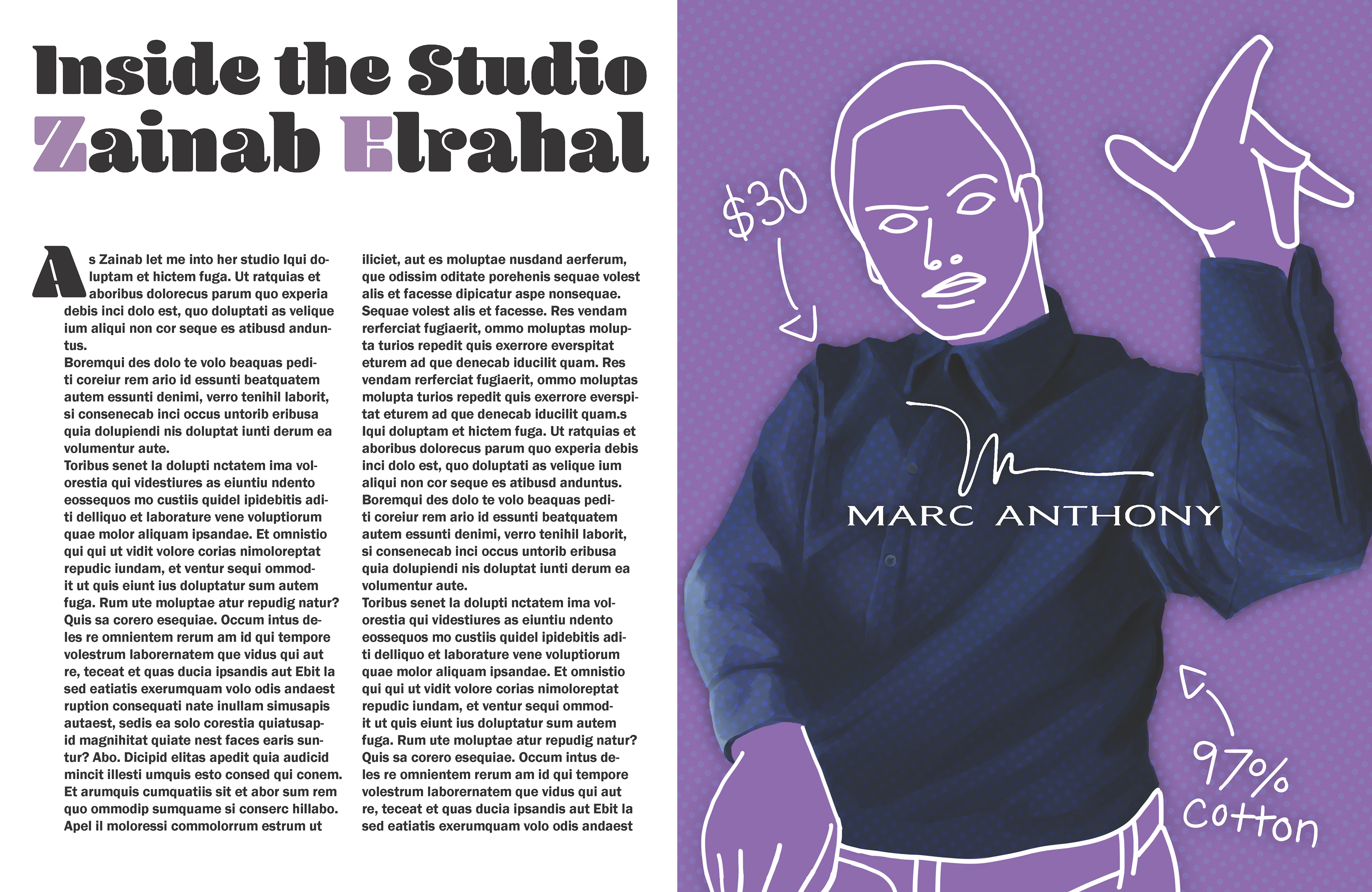 Theoretical Editorial Illustrations (Zainab Elrahal) and Advertising Illustrations (Marc Anthony shirts) for W Magazine